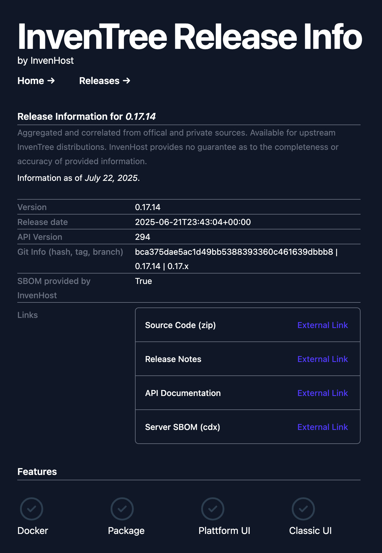 The InvenHost Tools now give free access to pre-compiled SBOMs for the dependencies of the InvenTree server - more variants to come soon.